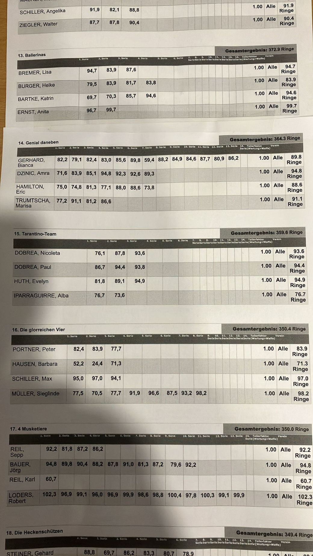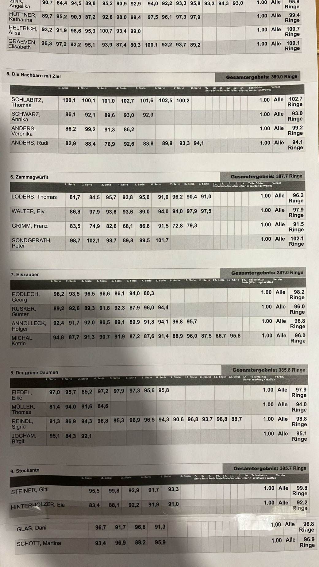 2. Platz "Flintenweiber" hatte ein Gesamtergebnis von 398,9 Ringen.Die Mannschaft bestand aus : Goller Angelika, Miensok Ewelina, Müller Michaela, Theobald Silke